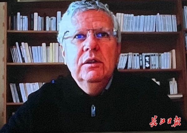 巴黎市政府前总建筑师伯尔纳·兰多正在远程连线。 记者何晓刚 摄