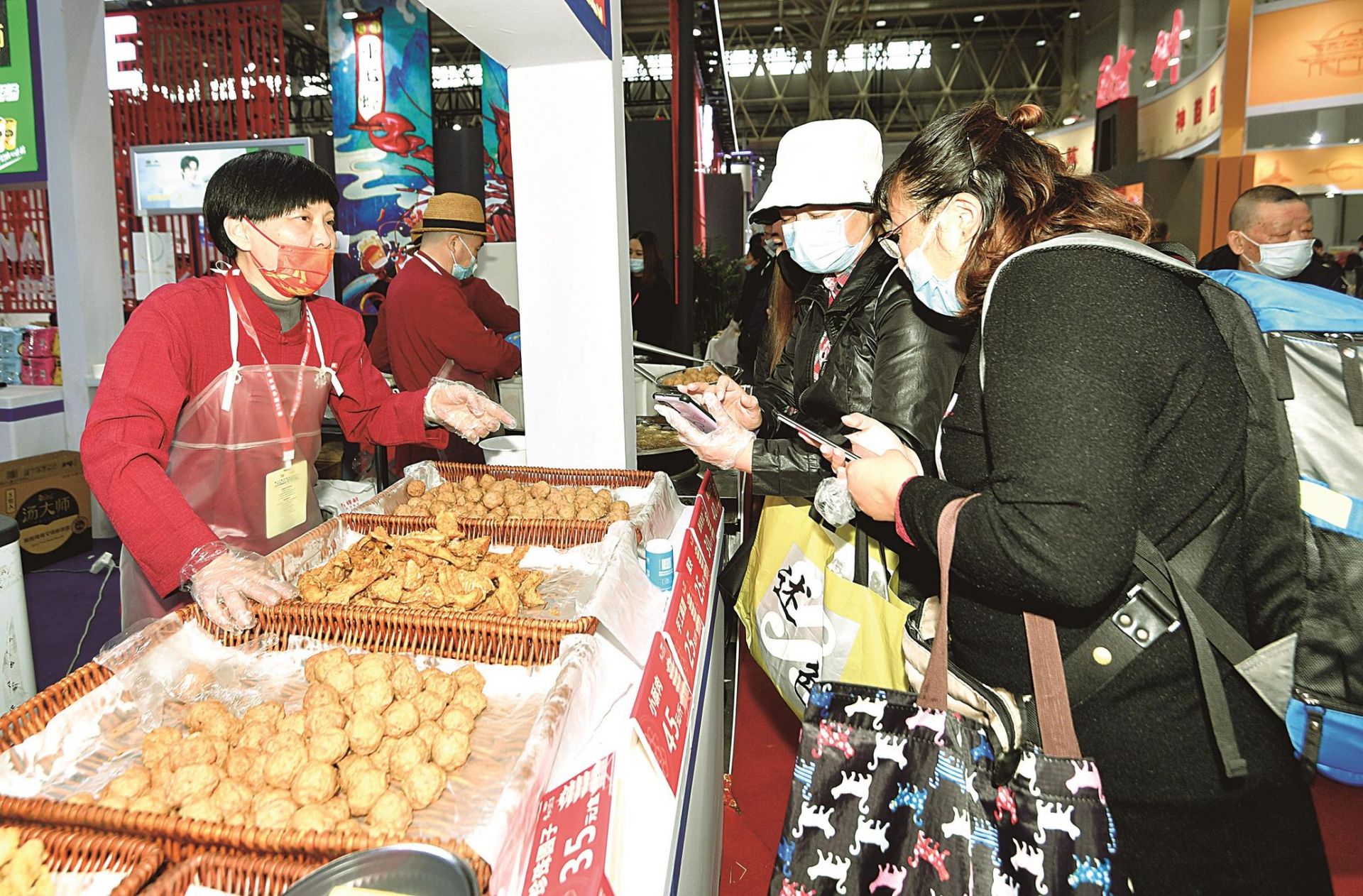 “刚在消博会看了好多高端大气上档次的产品,逛着逛着闻到了炸肉圆子的香味,就过来看看有啥能买的,提前打点年货。”参展观众刘爹爹告诉记者。和往年一样,人气产品升官渡黄焖圆子,吸引了大批顾客。