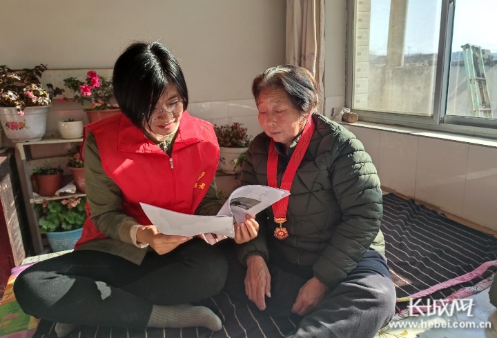 11月16日,迁西县太平寨镇组织委员刘明杰走进太平寨一村75岁高龄老党员齐素莲的家中,和老人一起学习党的十九届六中全会精神。因身体原因出行不便,齐素莲无法参加村里组织的集中学习,刘明杰为老人带去了学习资料。