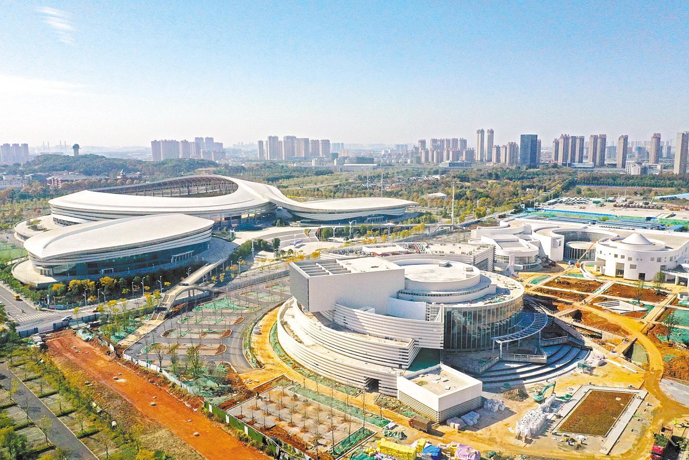 11月24日,与五环体育中心相邻的东西湖区文化中心建设已经进入收尾阶段。