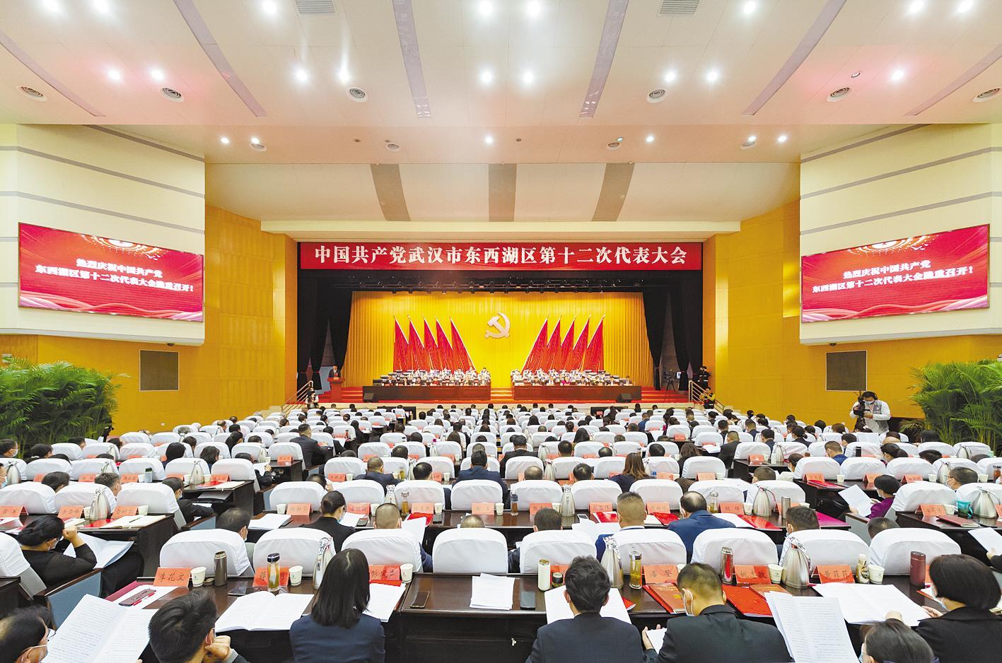 12月5日,中国共产党武汉市东西湖区第十二次代表大会开幕式在东西湖区会议中心举行。图为开幕式现场。