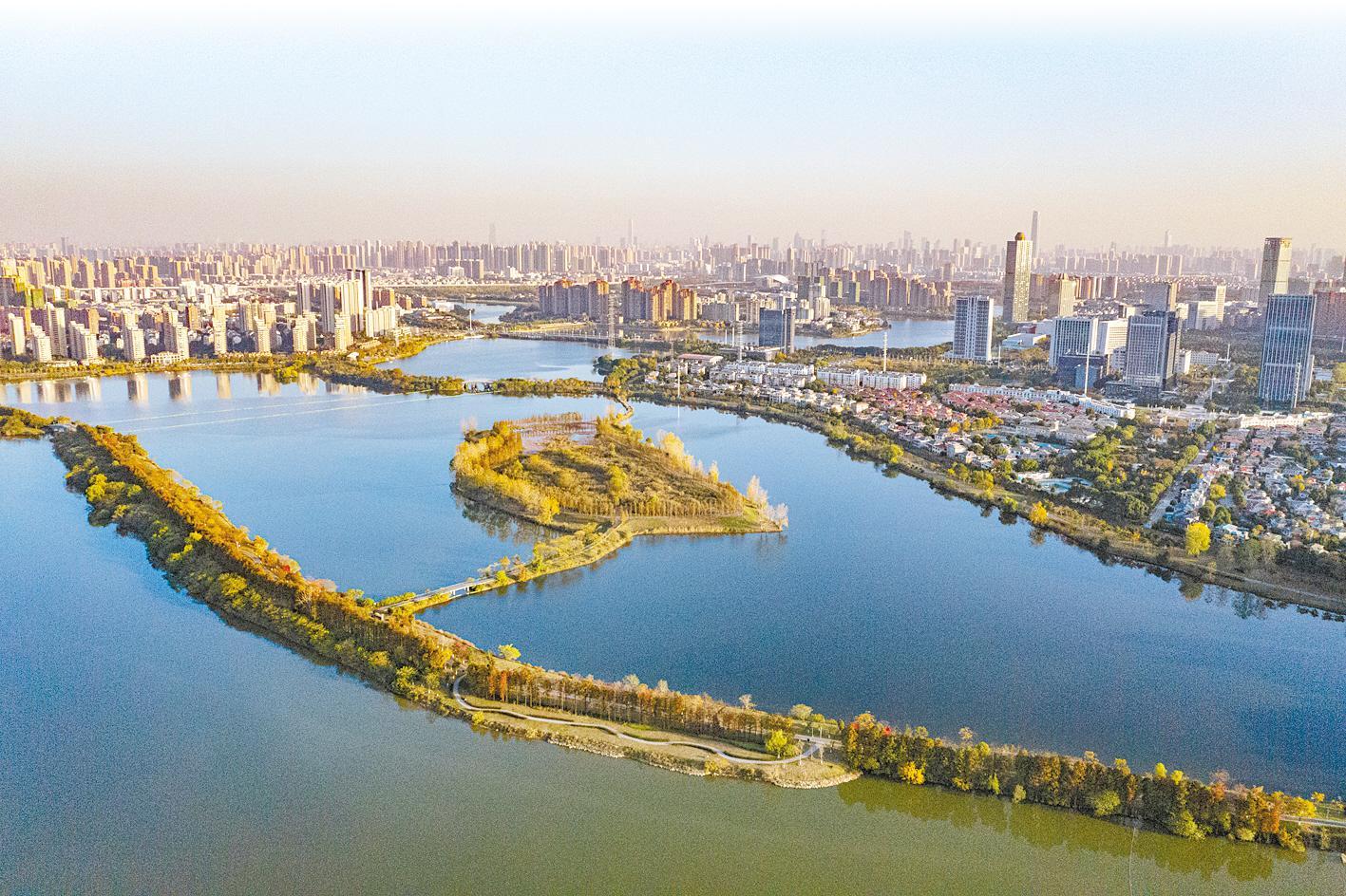 11月23日,傍晚的阳光洒在金银湖绿道上,各色的树叶将绿道浸染,五彩斑斓。金银湖总长42公里的滨湖湿地绿道,成为市民假日游玩的好去处。
