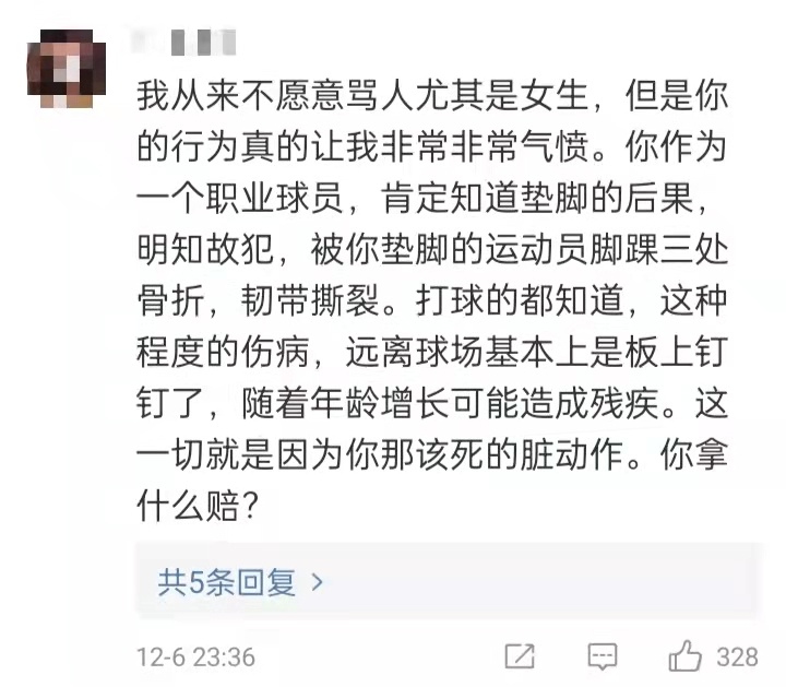 此次,孙丽的受伤更加严重,需要经历漫长康复期的她,未来的职业生涯也被蒙上了一层阴影。而第一时间没能得到当事球员的致歉,于她来讲,或许内心又遭遇了一次同样沉重的打击,这也才导致视频中出现了一系列的质问。