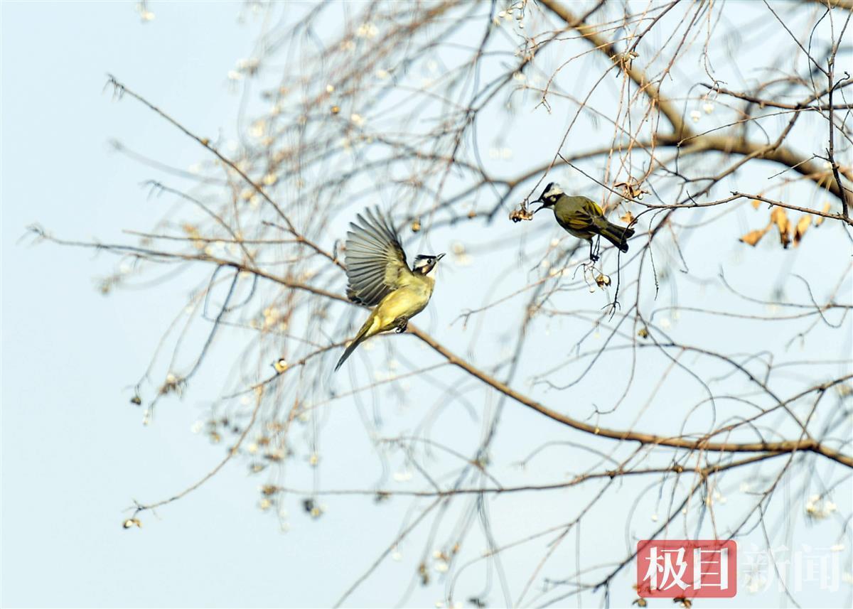 12月7日,武汉东湖绿道旁、磨山边垂绿地树林,大群白头鹎的叫声,清脆响亮、悦耳动听。