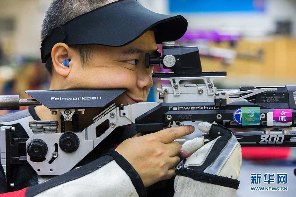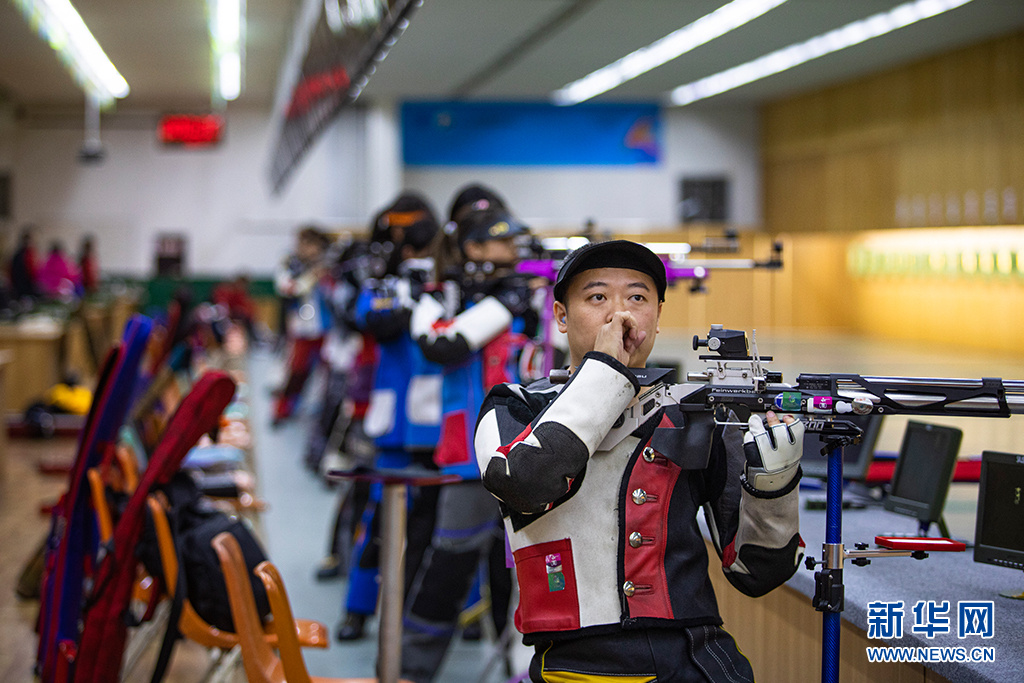 所有体育项目,想要站在金字塔尖都要付出超于常人的努力。早出晚归泡在射击场上,每天把近11斤重的射击气步枪反复托举300多次,射击子弹200发以上,从接触射击项目开始,董超就对自己很严格。图为董超在进行射击训练。新华网 张可凡 摄