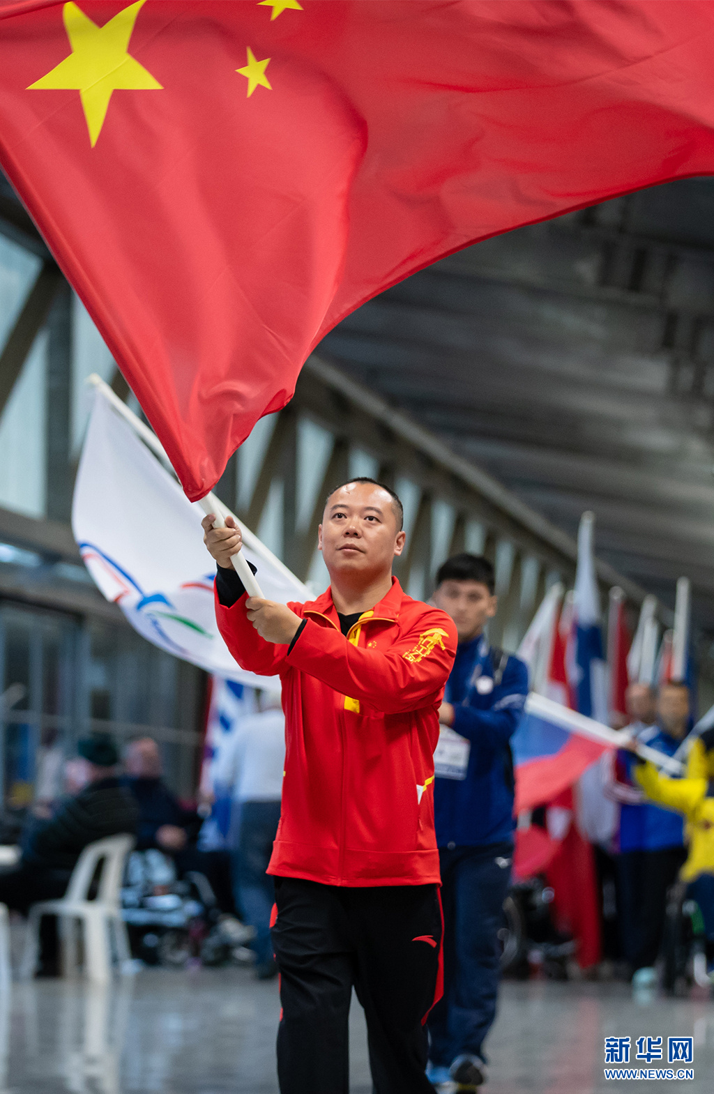 除了奖牌之外,射击运动带给董超更多的是看不见的荣誉。董超表示:“射击对于我而言,是生命中很重要的一部分。我很开心,因为射击,我站在了更广阔的世界舞台上。”图为董超在2019年澳大利亚世锦赛开幕式担任旗手。