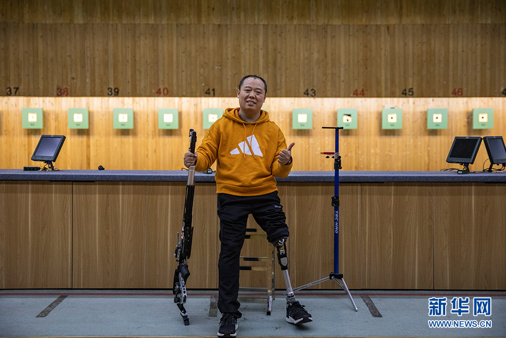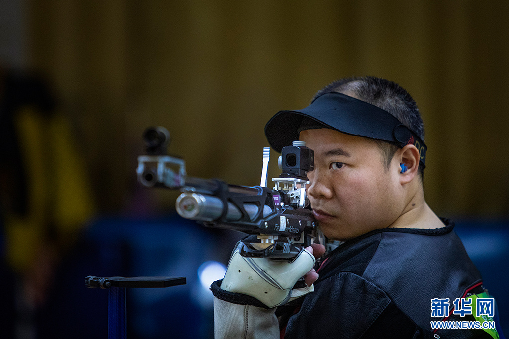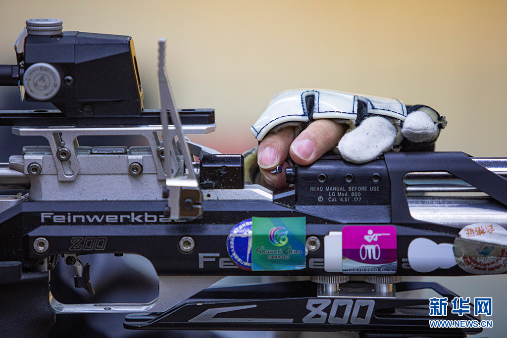 残奥会四朝元老、三届冠军、“独腿神枪手”……属于董超的标签都离不开陪伴他的气步枪,仿佛从17年前举起气步枪瞄准靶心的那一刻,他就用这项体育运动瞄准了人生的“靶心”,从此一人一枪闯出了自己的世界。(摄影:新华网曹鹏 张可凡 文字:新华网王梦)图为董超在进行射击训练,右手轻扣气步枪扳机,坚定的眼神锁定靶心。新华网 曹鹏 摄