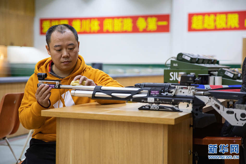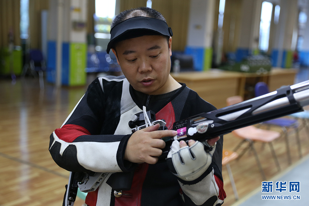 3岁时一场意外车祸让董超左腿高位截肢,长大后的他通过运动开始了新的人生。与射击结缘出于偶然,当时董超因乒乓球打得好而被邀请到四川省省队试训。在省队教练的建议下,他尝试了射击训练,结果第一次拿起气步枪试射时便每发都上了靶,而且散布范围也很集中,也就此开始了射击生涯。图为董超正在对气步枪进行维护保养。新华网 张可凡 摄