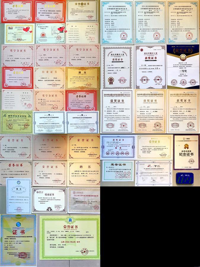 大学期间,王一帆三年专业成绩排名年级第一,多次获得奖学金。她参加各种赛事,捧回第五届全国大学生生命科学创新创业大赛一等奖、全国大学生英语大赛一等奖、湖北省第八届大学生生物实验技能竞赛二等奖等多个奖项。她还担任了学生干部,并积极参与社会实践活动和志愿服务活动。3年多来,她获得的各种证书一共有43个。