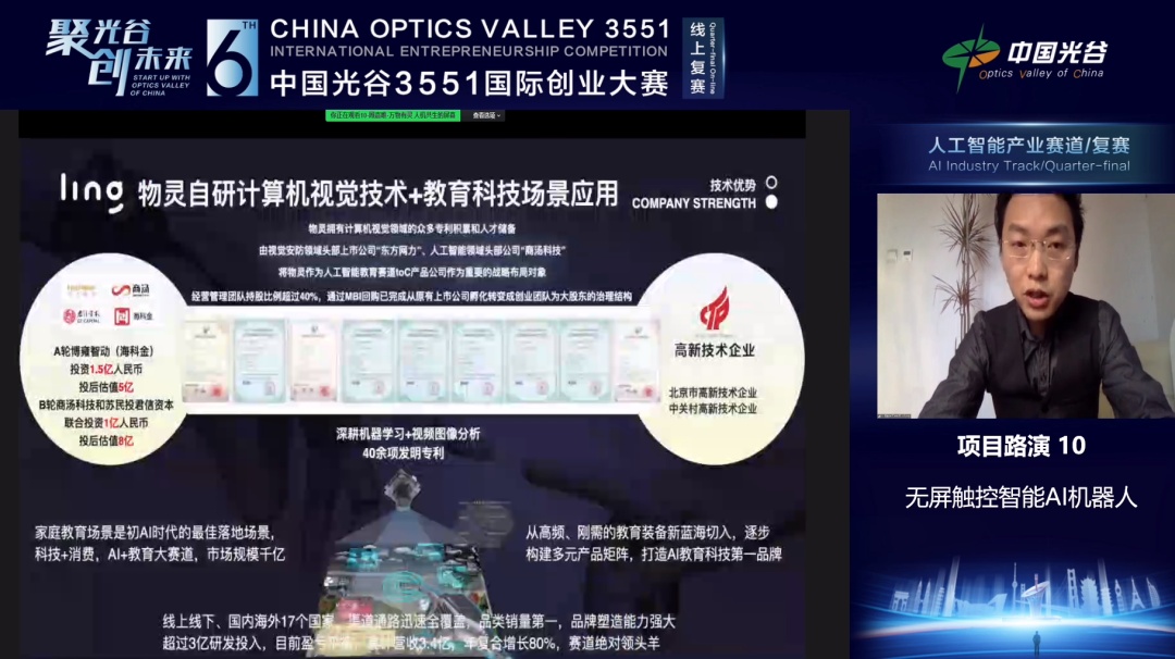 第六届中国光谷3551国际创业大赛复赛(人工智能产业赛道)现场。 记者严峻 摄