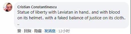 “自由女神手里却拿着《利维坦》,头顶沾满鲜血,胸前戴着一个失衡的天平。”