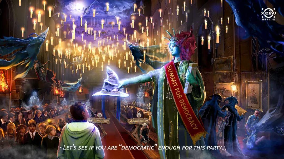 还有外国网友看完漫画有感而发,为美当局量身打造了一个与Democracy(民主)相近的词——“DemonCrazy”(恶魔民主),并将此次“民主峰会”比作“‘恶魔民主’的分类大会。”