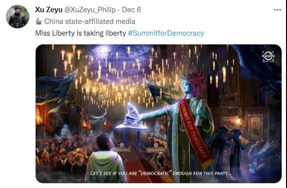 这幅漫画发布在新华社记者徐泽宇的海外社交媒体账号之后,总共吸引了200多万外国网友观看、4万多次点赞,他们就漫画的寓意和“民主峰会”本身展开热烈讨论。