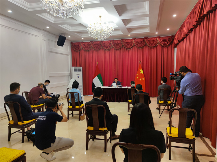 阿联酋记者提问。中国驻阿联酋大使馆供图