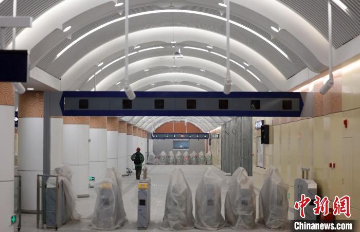 北京“地下中轴”轨道交通8号线今年底将全线贯通,装修设计凸显“门观中轴”。 中新社记者 富田 摄