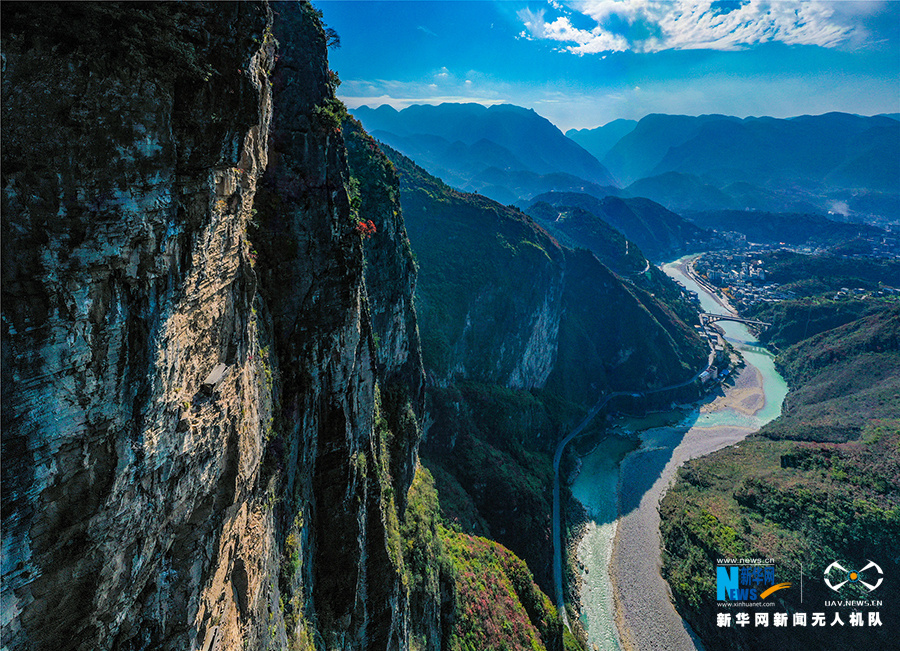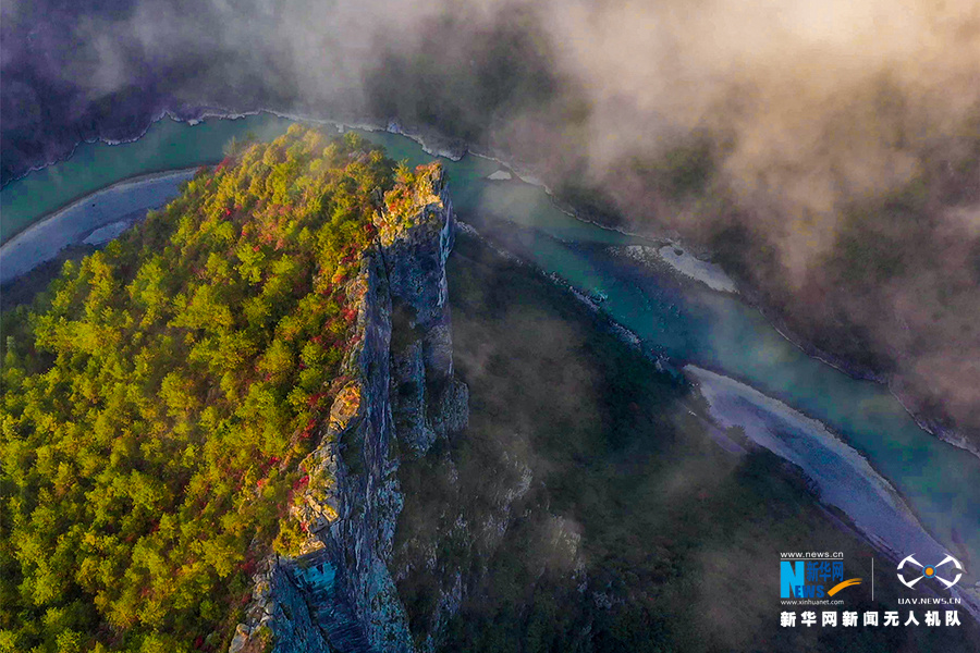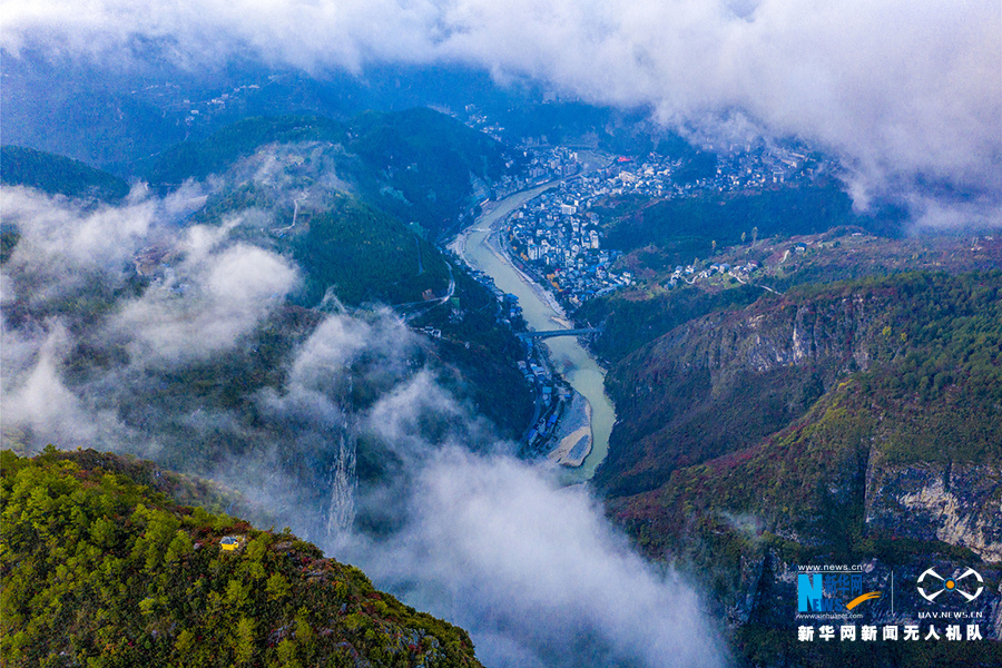 初冬时节,重庆市巫溪县九层楼景点呈现碧水青山绕古城的好风光。九层楼景点位于巫溪大宁古城北侧,海拔700余米,是大宁河畔有名的岩棺遗址,站在山顶之上,可俯瞰大宁古城全貌,也可俯瞰大宁河绝壁风光。新华网发(王强 摄)
