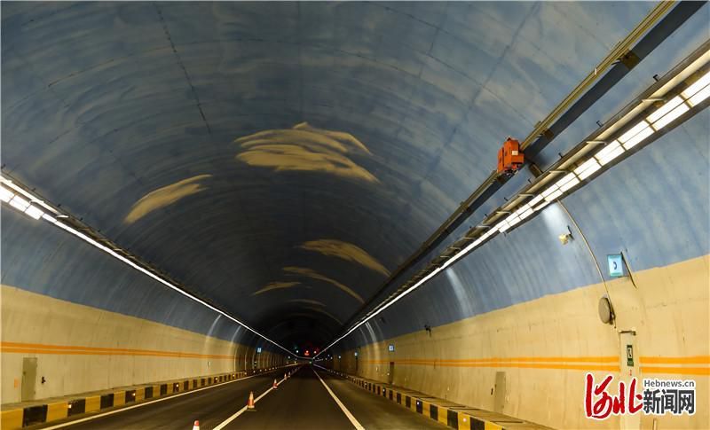 在延崇高速主路段的隧道内,橙色的智能机器人在查看隧道内车路协同情况。河北日报记者耿辉摄