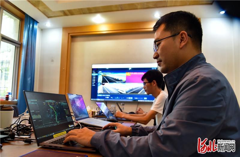 延崇高速工作人员在查看延崇高速主路段的气象情况等信息。河北日报记者耿辉摄