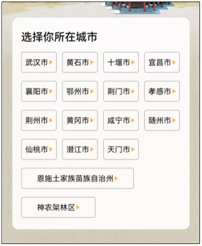 2.在“湖北消费券2021”页面选择所在城市,进入城市会场。