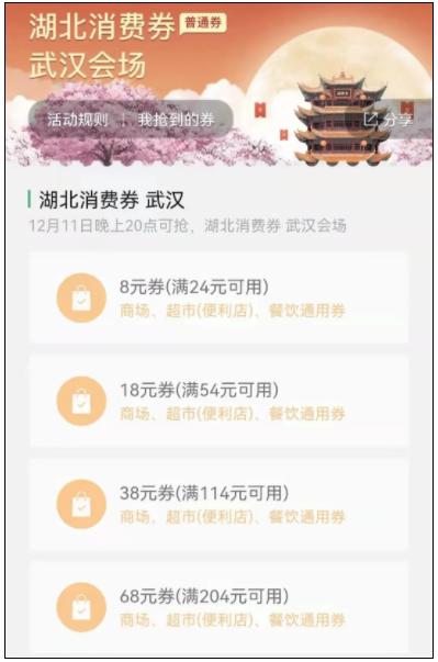 这是12月份唯一的一批湖北消费券