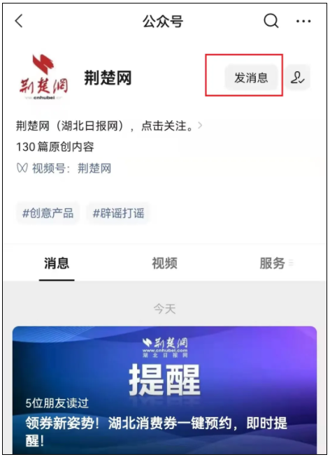 进入“荆楚网”公众号内容页
