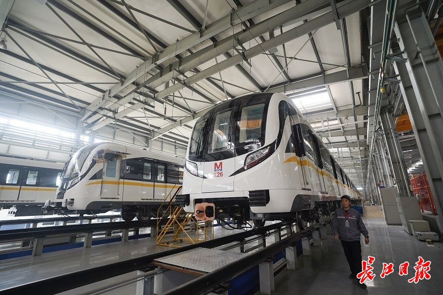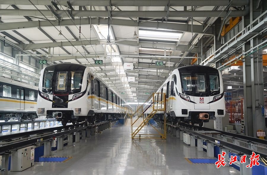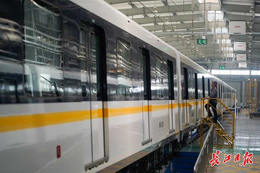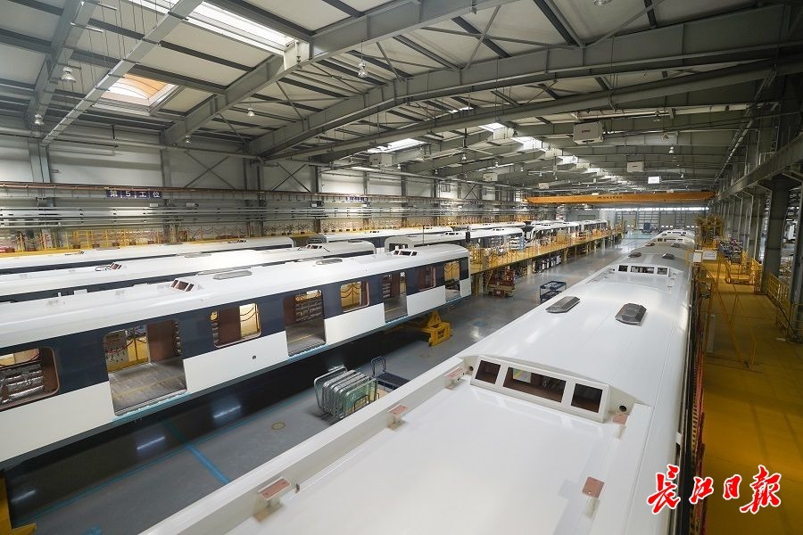 走进武汉中车长客的车间,4列地铁列车整齐地排列在工位上,列车车厢的门窗、座椅、控制系统正在组装中。