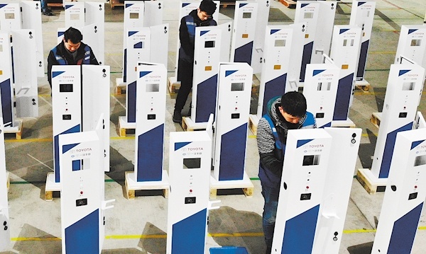 追日电气员工在装配充电桩。 (湖北日报全媒记者 田悦 通讯员 王虎 摄)