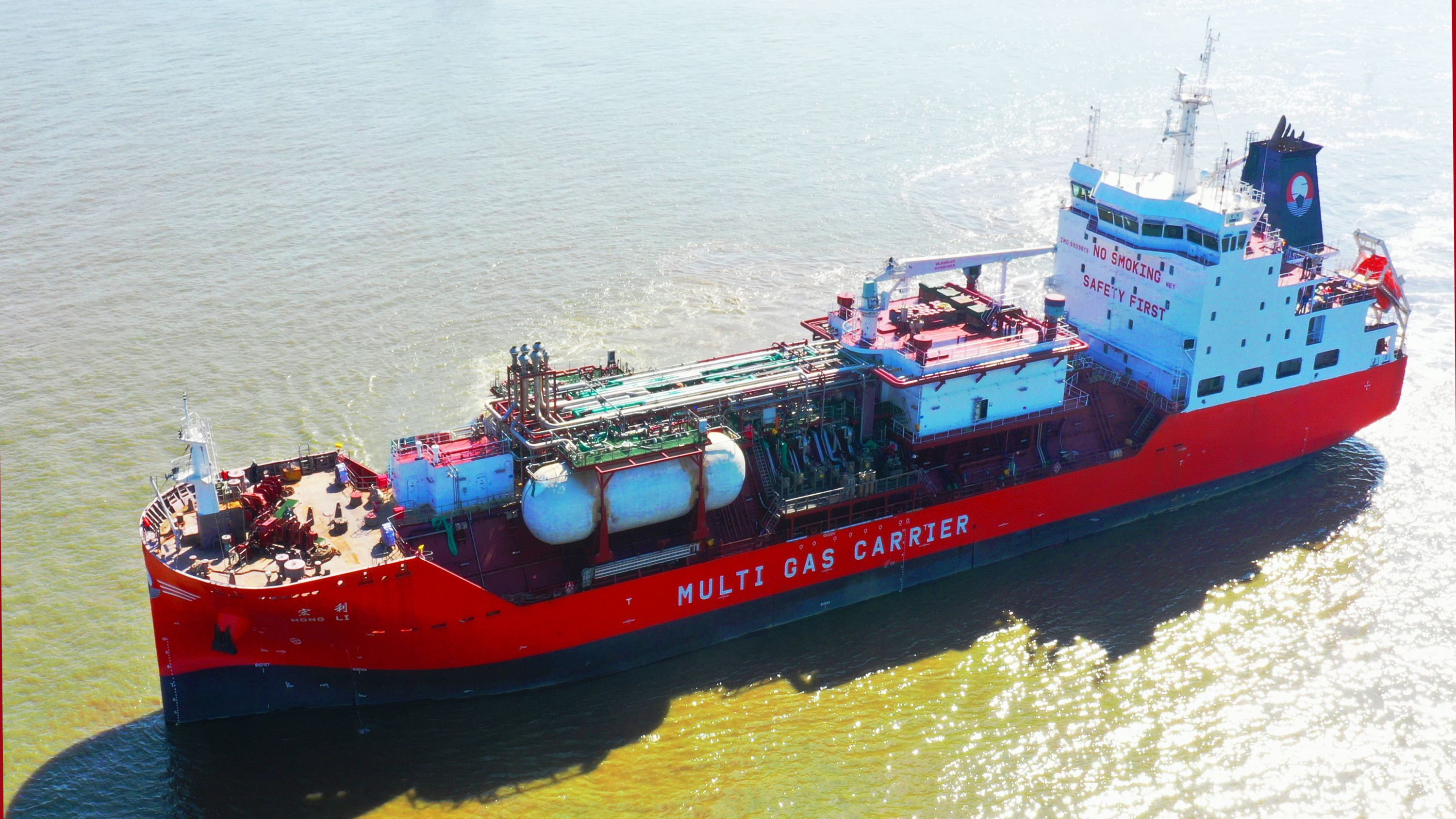 国内首艘双燃料多用途气体运输船交付使用。通讯员许少华 摄