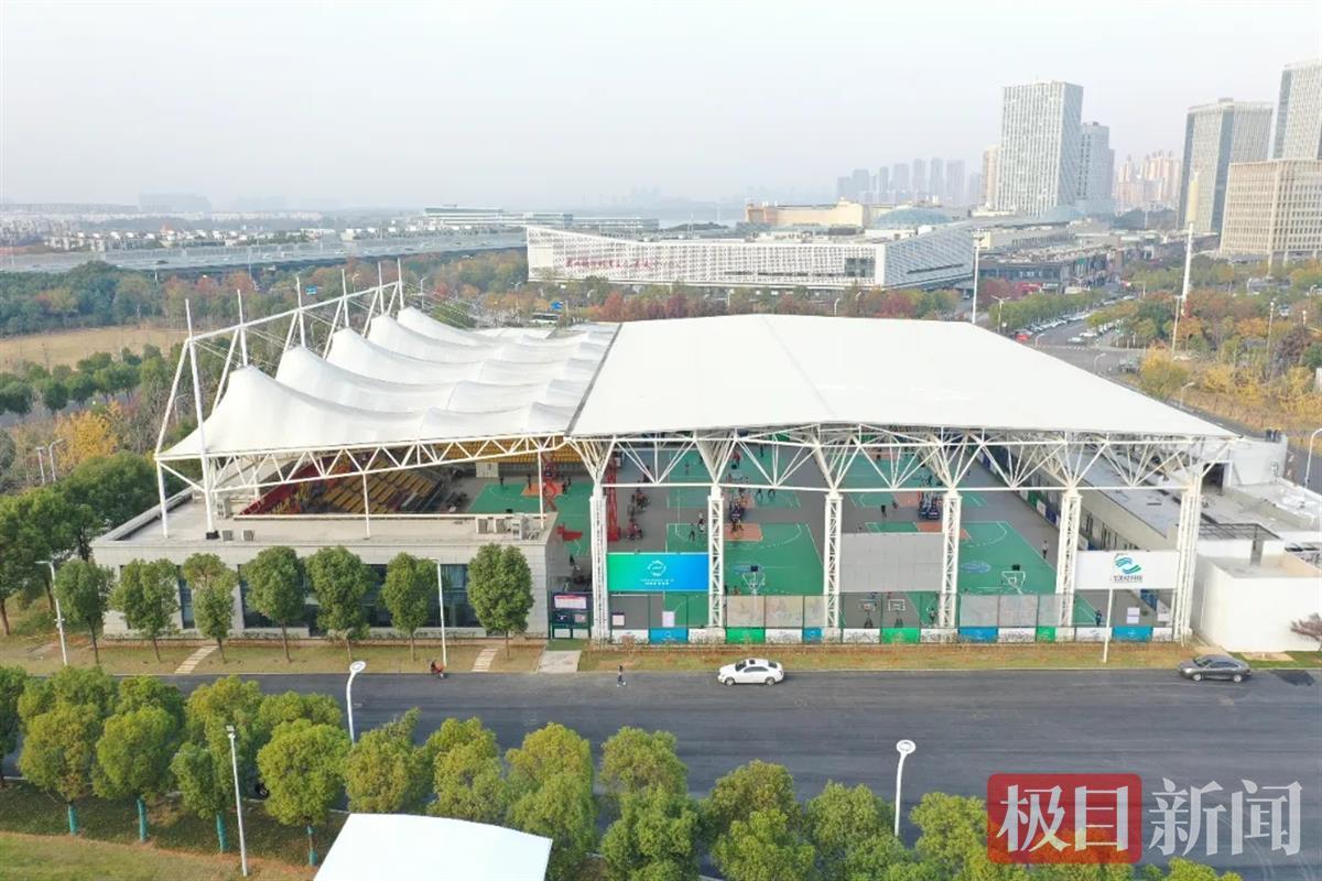 除此之外,武汉体育中心充分利用拆除的临建威亚塔钢材,将其作为风雨篮球场、网球场以及配套服务设施顶棚结构,可利用拆除钢材约1800吨,综合利用率达70%。