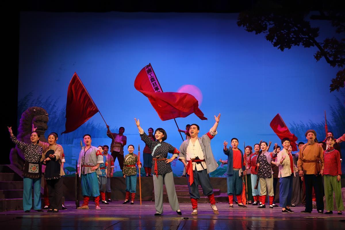 “狂风扑不灭燎原的烈火,雨血毁不了山上的青松!”嘶吼出那个年代人们保卫家园的坚定决心。“生我是娘,教我是党,为革命,砍头只当风吹帽;为了党,洒尽鲜血心欢畅!”表现了共产党人坚贞不渝的革命信仰。“娘啊,我死后,请将我埋在高高的山坡上,向着东方!”昭示着英雄儿女视死如归的赤子之心。“洪湖水,浪呀浪打浪,洪湖水边,是呀是家乡……”伴随着经典的旋律和潮水般的掌声,演出现场气氛热烈。