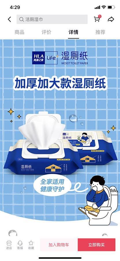 极目新闻记者发现,15日下午,在购物平台已经搜索不到“海澜之家生活家旗舰店”的店铺;该品牌的微信公众号上也没有内容;某视频平台里官方号所有的视频内容也都被删掉了,店铺里只剩下一个纸巾的购买链接,极目新闻记者点进链接发现,该产品的包装和详情页都有“小海”的形象。