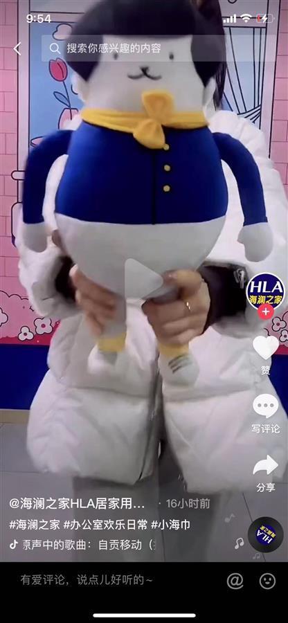 前两天,有粉丝私信告诉WHIKO谜之生物工作人员,他们品牌的IP形象被抄袭了。“我们在找抄袭证据的时候,越找感觉越恐怖。海澜之家新生产了一个线做居家类产品,开了个店叫海澜之家生活家。这里面每个品类的产品包装、宣传推广、店铺装修,都是这个形象,公众号里介绍了这个形象叫‘小海’,甚至抖音上还拍了公仔。”