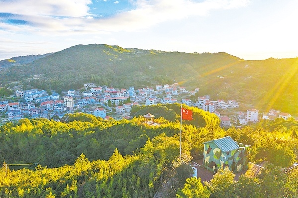12月12日,厦门市同安区军营村迎来朝霞日出,鲜艳的五星红旗迎风招展。 (湖北日报全媒记者 梅涛 摄)