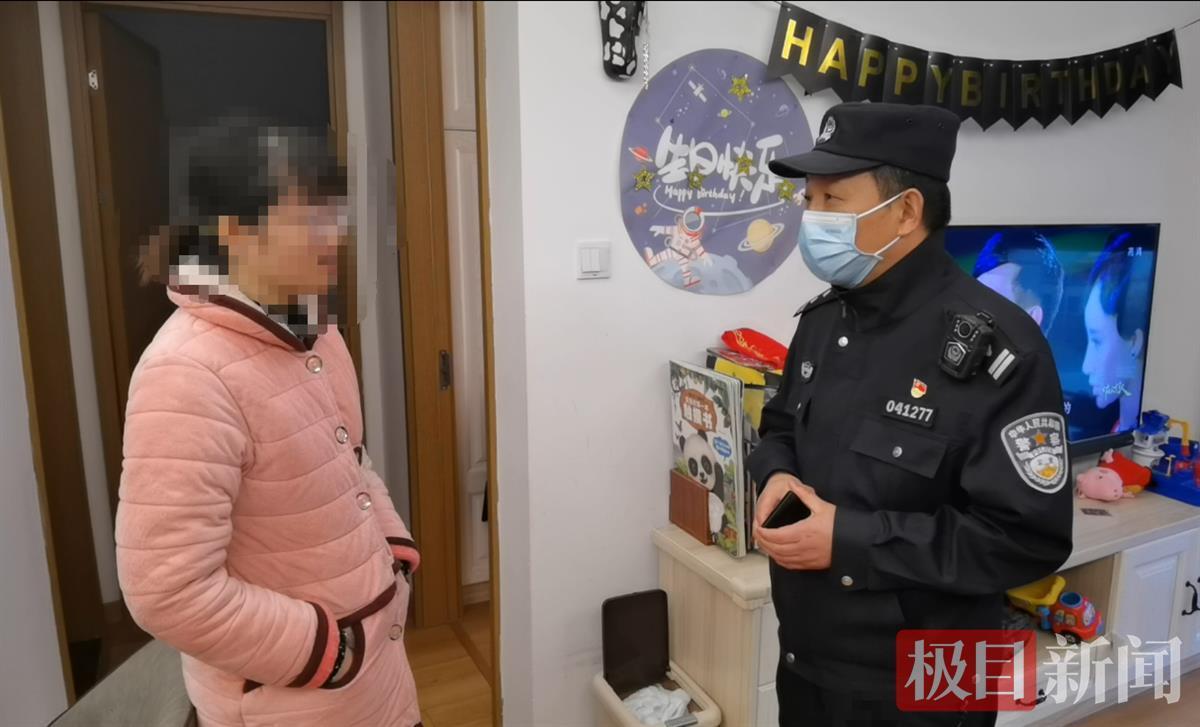 12月15日下午3时10分,黄陂区公安分局腾龙派出所接到电诈预警平台紧急指令,黄陂区巨龙大道某小区居民徐女士正在接听电信诈骗电话。事不宜迟,社区民警朱万春马上带领民警李倩、辅警董灿驱车前往拦截。赶到徐女士家中时,大门敞开,民警朱万春见到了束手无策的徐母和徐年幼的儿子。“徐女士在家吗?”朱万春着急地问道,得知徐女士把自己锁在卧室已经很久了,任人怎么喊都不开门。