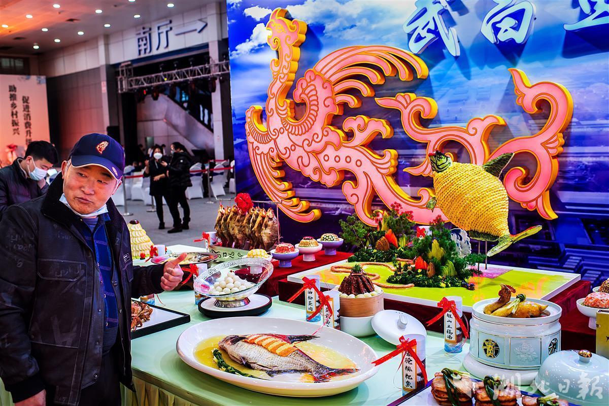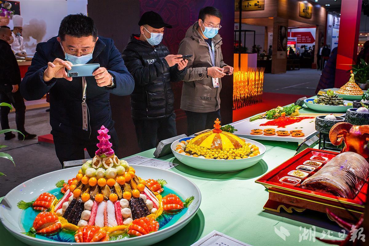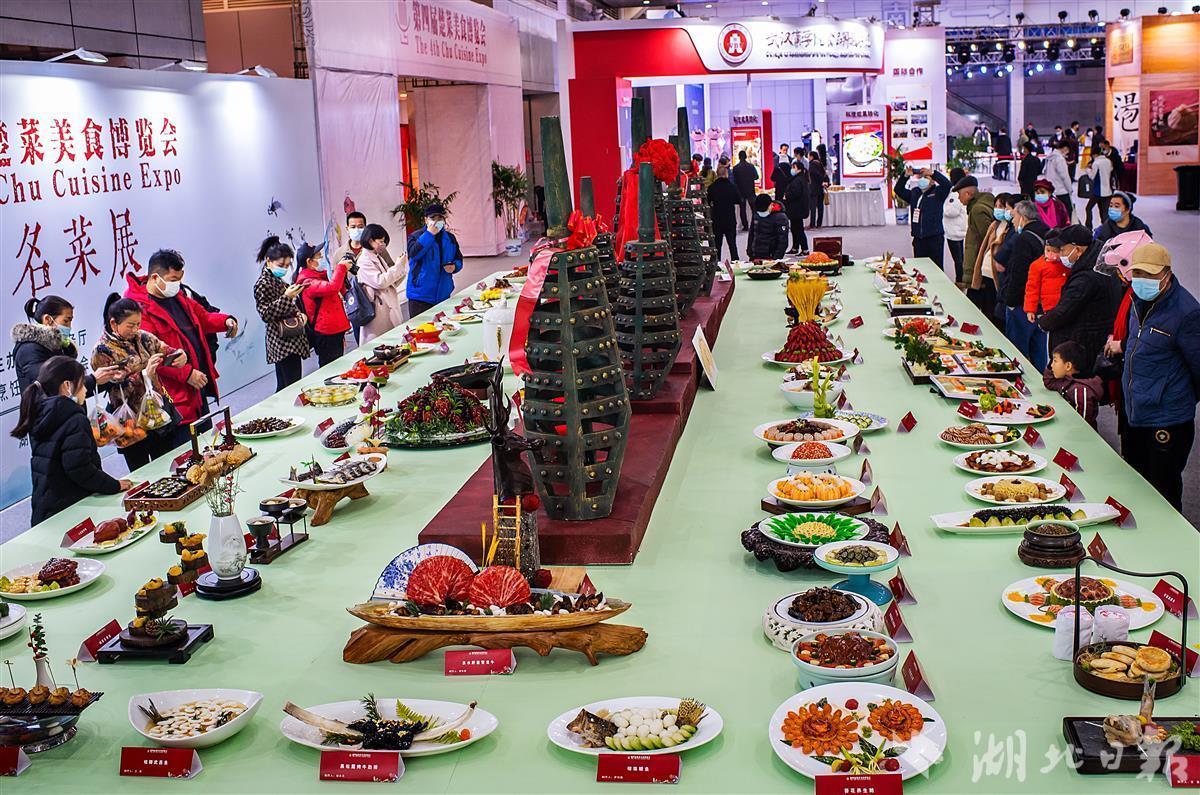 楚菜美食博览会上,观众除了可以一览葱烧武昌鱼、莲藕排骨汤、沔阳三蒸、荆沙甲鱼等具有浓郁地方特色的传统楚菜菜品之外,还可以一览恩施、咸宁、襄阳、宜昌等地区的楚菜产业发展部分成果。(湖北日报全媒记者 朱熙勇 摄)