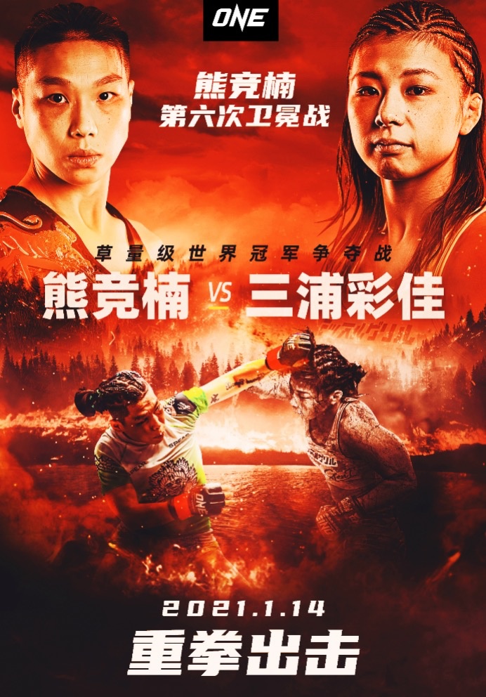 12月16日,ONE冠军赛公布了“ONE:重拳出击”大型格斗赛事全战卡,本场比赛将于2022年1月14日在新加坡室内体育馆进行,综合格斗世界冠军熊竞楠将在头条主赛中对阵草量级世界排名第4位的日本名将三浦彩佳。
