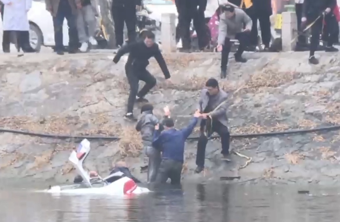 2、轿车失控坠湖,民众寒冬中奋勇跳水救人 15日,山东菏泽单县仙人湖一辆小轿车突然失控,撞开护栏冲入湖中,附近居民看到这一幕,迅速赶往现场施救,其中一名勇敢的市民第一时间跳入湖中展开救援,将落水女子救到岸边。目前,两名落水者均无大碍。(央视新闻)