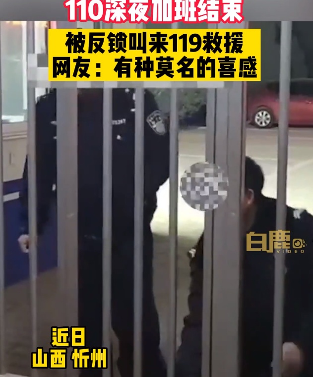 2、110深夜求助119开锁 近日,山西忻州两位民警深夜加班结束,发现被反锁在单位。由于天气气温过低,门锁被冻坏,无法打开,遂拨打119电话求助。消防队员们火速赶来救急,将大门打开,“救出”民警。网友调侃称:这样的联动有种莫名的喜感。(@白鹿视频)