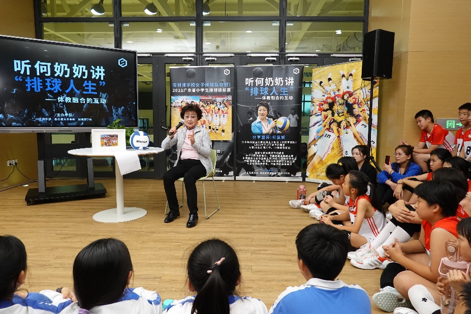 六十年代复旦大学女排队员、国家体育总局原党组成员、中国奥委会原副主席何慧娴在深圳湾学校参加“体教融合”公益讲座