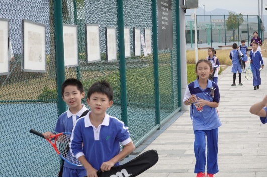 深圳湾学校学生参加网球训练 新华社记者 印朋 摄