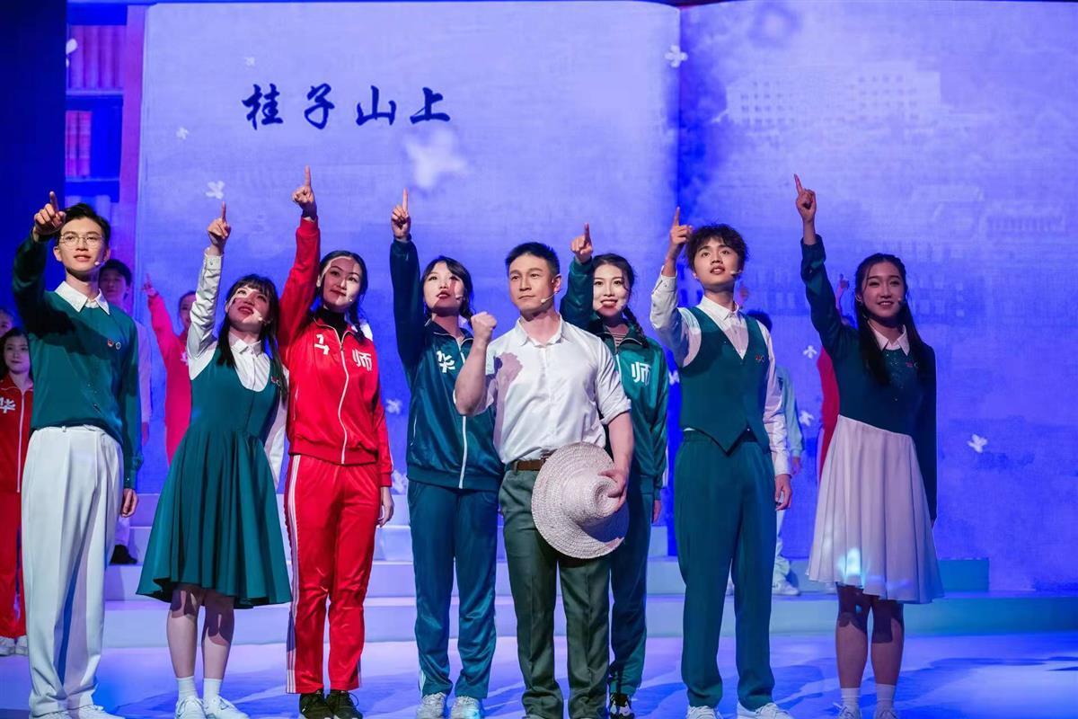每一幕剧之间,都穿插了一首校歌的合唱,从文华书院校歌、华中大学校歌直到华中师范大学校歌,对该校不同历史时期的校歌重新演绎并传唱。节目最后,今年中国好声音季军、华师2021届毕业生陈文非演唱校园民谣《桂子山上》。