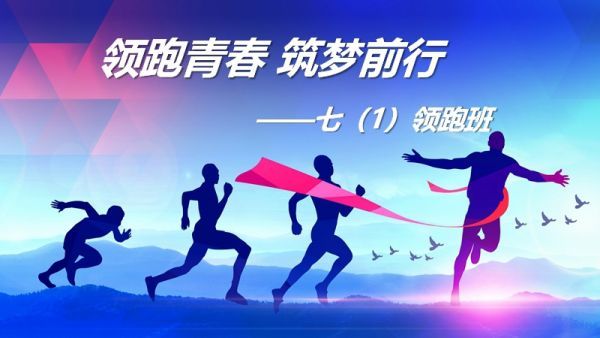 有了个性班名,班徽如何体现“领跑”?崔奥兰把这个任务交给了班上的“设计达人”吴婉林同学。她以蓝色为主色调,描绘了一名运动健儿迎着朝阳奋力奔跑的场景,红色的跑道延伸至远方,班徽外围两侧写着“不畏擎天,引领无限”的班训。
