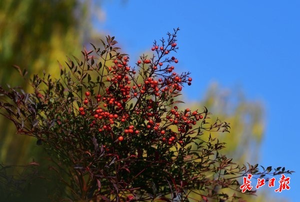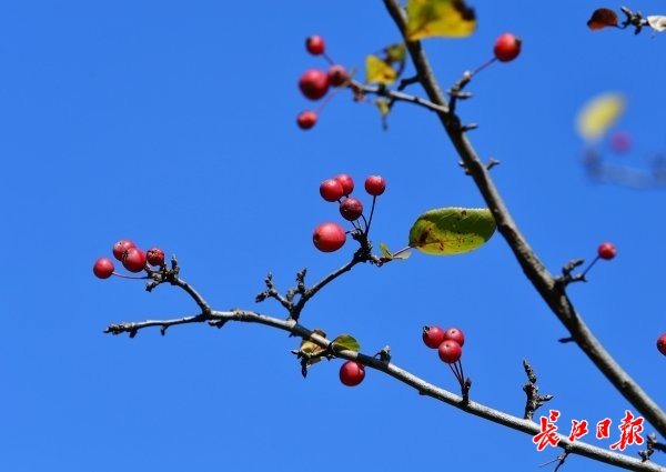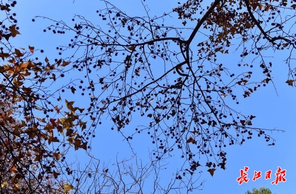 长江日报大武汉客户端12月19日讯 19日,武汉天气晴朗,寒云淡淡天空蔚蓝。不少市民走上绿道、公园晒太阳,赏风光。抬头仰望,蓝天澄澈,若恰有枝头的累累果实映入眼帘,红的、黄的、白的、紫的、黑的……一个个、一串串、一团团、一层层……构成一幅幅巧夺天工的如画景致。