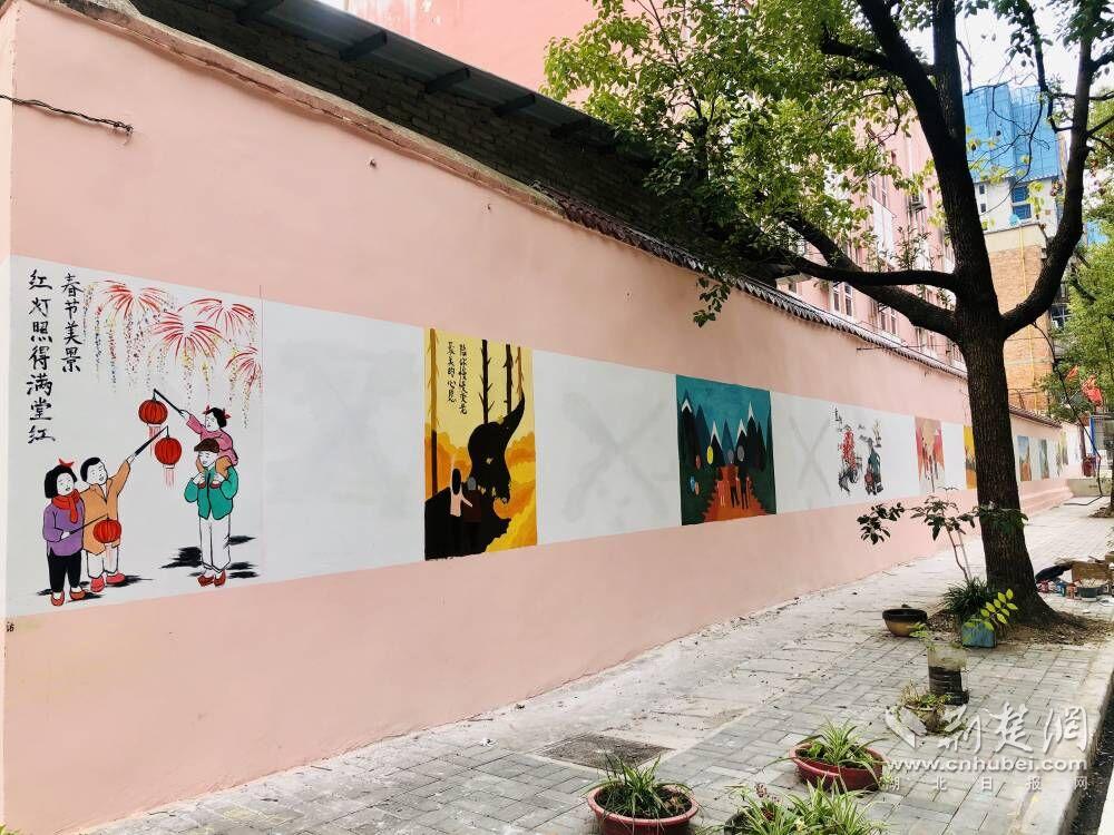 荆楚网(湖北日报网)讯(通讯员张伯康)“文明创建就是要有新变化,这个墙真是太好看了!”12月17日一大早,西陵区葛洲坝街道东方社区的居民刚一出门就发现社区养老院的沿街围墙焕然一新。连绵40多米的彩色手绘画铺满墙壁,粉色墙面、彩色手绘和蓝天红花相互映衬,美不胜收,让不少居民都忍不住停下脚步拍照留念。
