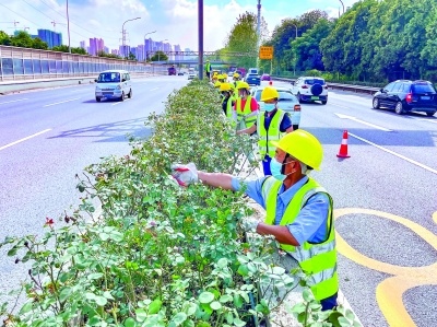 今年11月,他们还加强了三环线沿线植物常态化冲洗保洁,让植物们还原绿色“本色”。“每天非交通高峰期,园林工人们都会对沿途植物进行冲洗,大概每两天能完成一整圈的冲洗任务。”万奕说,他们将突出重点路段,努力为打造更加“清洁、清新”的城市绿化景观献出一份力量。