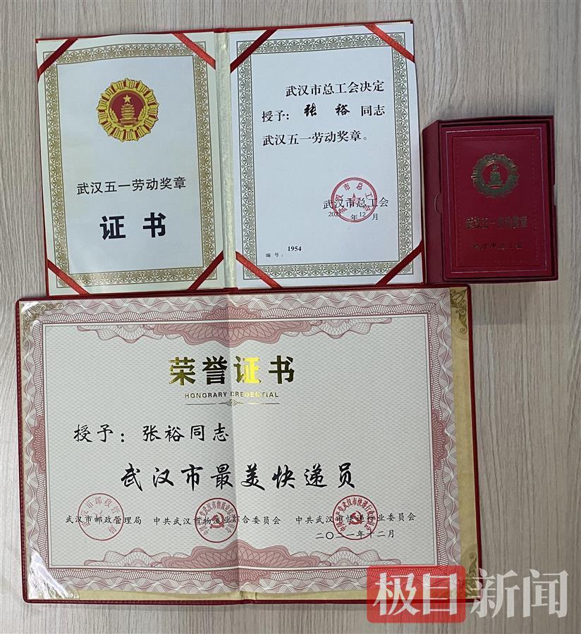 面对突发火情,不畏艰险、挺身而出,成功帮助因火灾被困的家庭脱险。12月20日,武汉市总工会授予张裕同志武汉“五一劳动奖章”;武汉市邮政管理局、武汉市物流业综合委员会、武汉市快递行业委员会授予其武汉市“最美快递员”荣誉称号。
