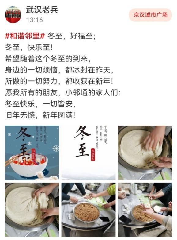 网友“武汉老兵”晒出了自家包饺子的有趣过程,同时也表达了对大家的真切祝福,希望大家“冬至快乐,一切皆安”。