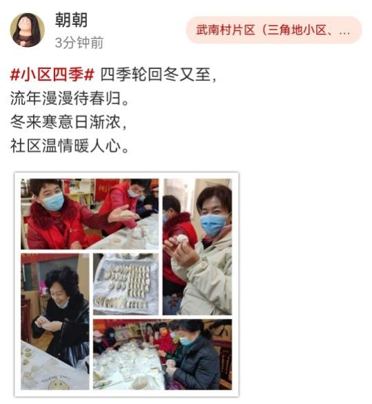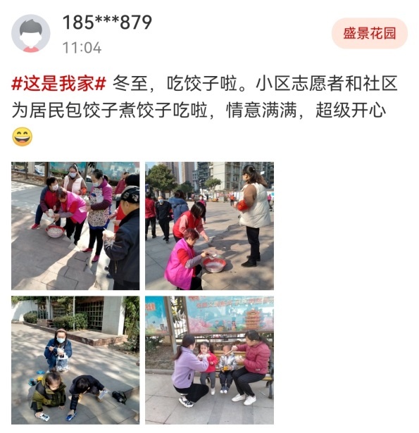 社区是由一个个小家庭组成的,除了自家饺子外,居民们在这个冬至也纷纷晒出社区里的“大团圆饭”。