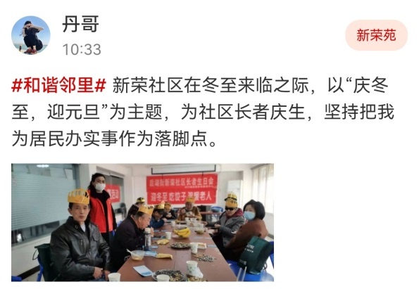 新荣社区趁着冬至,以“庆冬至,迎元旦”为主题,为社区内老人家庆生,给予了老人别样的温暖。