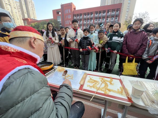 武昌中华路小学将多位非遗文化传承人请进校门,和孩子们共迎冬至的到来。转糖画、吃糖葫芦、编中国结、学中医知识、捏泥娃娃……还有19项各具特色的传统游戏,孩子们大呼这个特别的冬至节比过年还热闹。